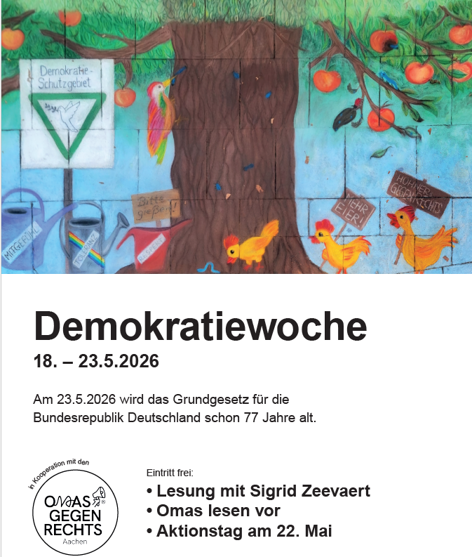 18. bis 23. Mai: Demokratiewoche in Zusammenarbeit mit Aachener Buchhandlungen (genauere Infos folgen)